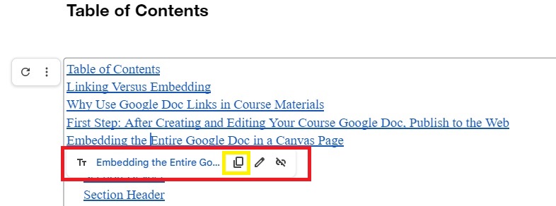 It’s always important when sharing Google Documents to use a heading structure to provide an outline of your course document. In this case, the links created by the Table of Contents will also create links to specific sections of the Google Doc.