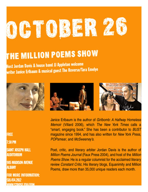 Over the years, I’ve hosted reading series and events such as Karaoke + Poetry = Fun, which was first held in Brooklyn’s Lyceum, then Bowery Poetry Club, and a couple times at The Spotty Dog in Hudson, NY. I also curated Frequency North: The Visiting Writers at The College of Saint Rose, bringing in 60-plus writers to Albany, NY.